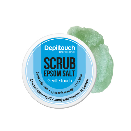 Depiltouch Professional Скраб-крем солевой с лимфодренажным эффектом с солью Эпсома - содержит 2 вида активной соли: комплекс соли Эпсома с экстрактами арники, имбиря и ананаса направлен на мощное лимфодренажное действие, а мельчайшая морская соль обеспечивает глубокое очищение и отшелушивание.