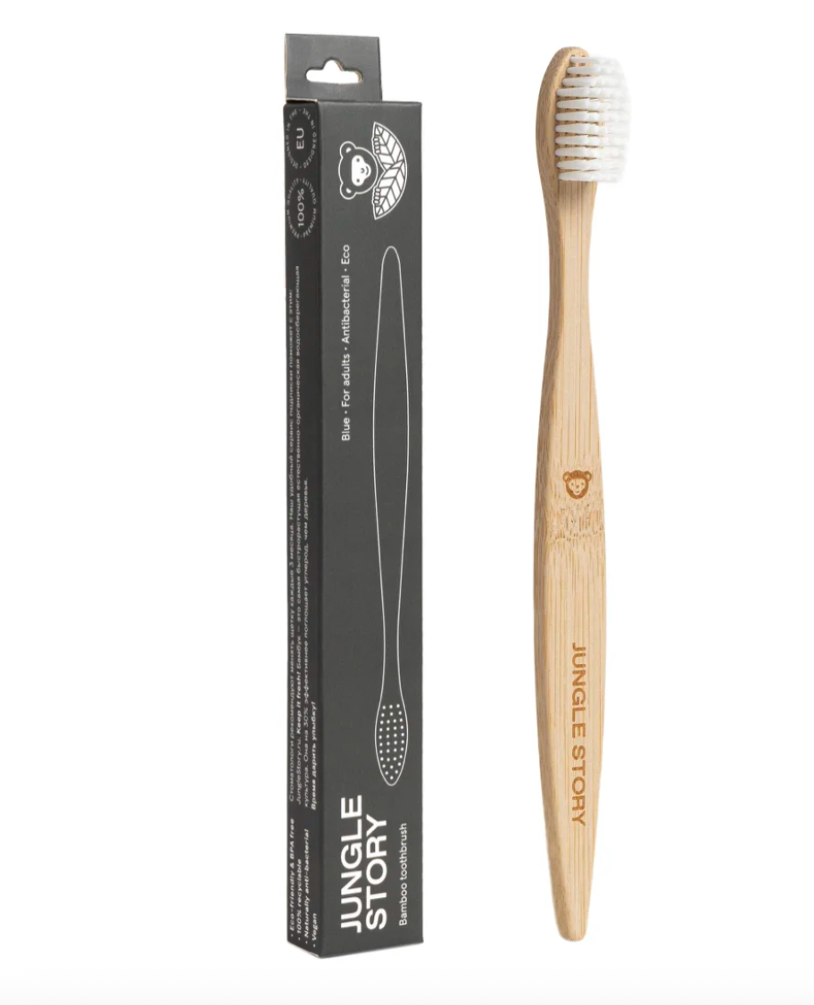 JUNGLE STORY Бамбуковая зубная щетка - мягко чистит зубы, не царапая дёсны и не повреждая зубную эмаль.